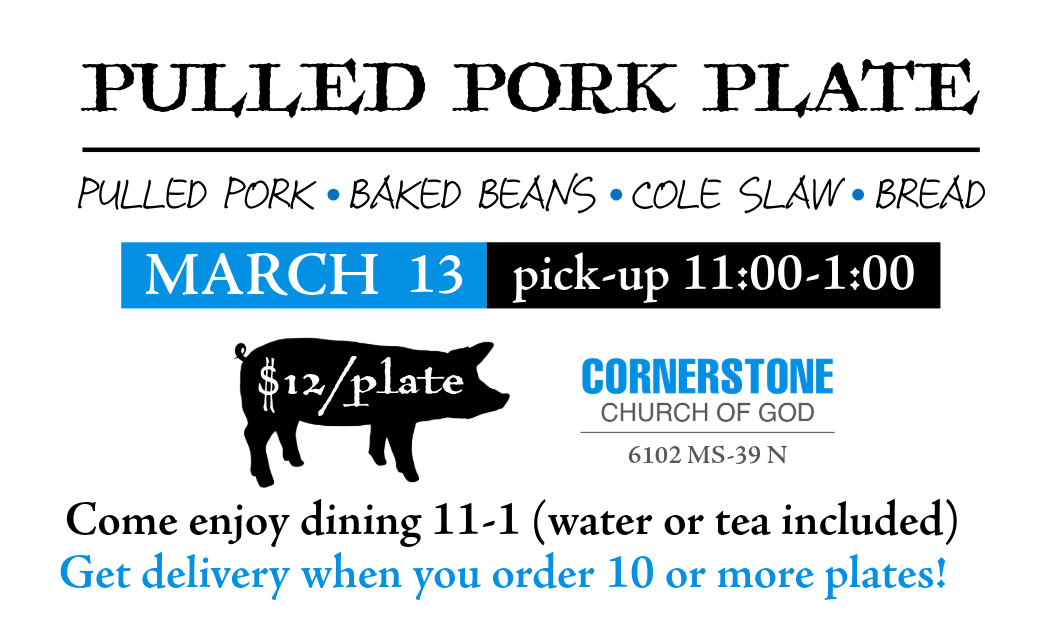 Cornerstone is hosting a Pulled Pork Plate Fundraiser to help support our upcoming trip to The Ark Encounter. This is a great way to enjoy a delicious meal while partnering with us as we invest in faith, fellowship, and an unforgettable learning experience.
